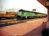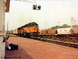 GP40's lead a Superior bound train north on the BN's "Skally" line in 1985.