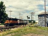 a picture of a BN train on a Milwaukee Road site you ask?This is a westbound