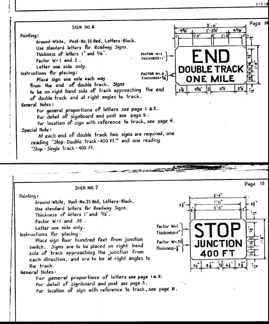 End Double Track One Mile/ Stop Junction 400 feet signs