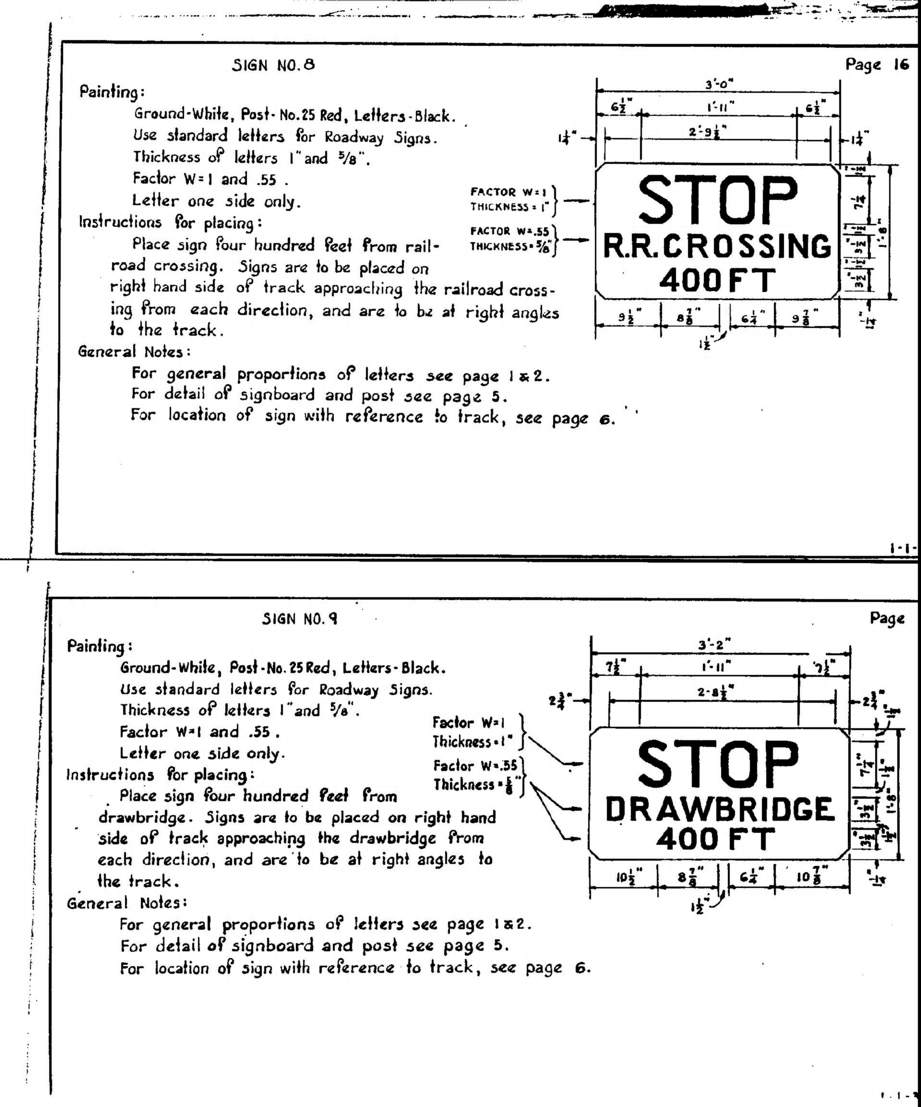 Stopp RR Crossing 400 feet/ Stop Drawbridge 400 feet signs