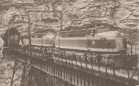 The early stages of electrified operation proved so successful that in 1917 it was decided to go ahead with electrification between Othello and Tacoma in Washington. The first test run on that track was on November 11, 1919, and formal operation began in March, 1920. Considerably later, a 10-mile electrified section between Seattle and Black River was constructed and went into operation on July 5, 1927. One interesting aspect of this operation is that electric locomotives are equipped with regenerative braking. This means that when the electric motors are reversed for braking, they become generators of electricity, so that about 12 per cent of the power used by the trains is recovered during braking. Some of these first locomotives are still in use today, proving their durability and efficiency. The Milwaukee’s 656 miles of electrified operation is the largest such operation in the U.S. |