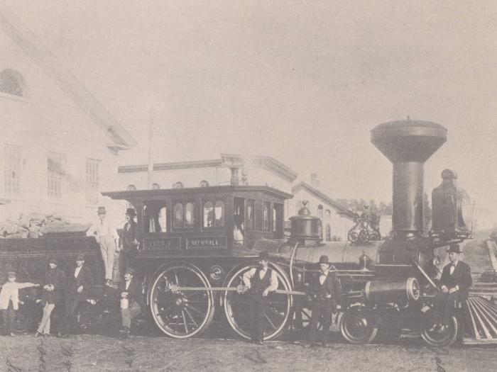 THE LOOK OF THE EARLY DAYS on the Milwaukee, and the pride of the train crews, are captured in this photo taken at Waukesha, Wisconsin, sometime between 1863-1874.