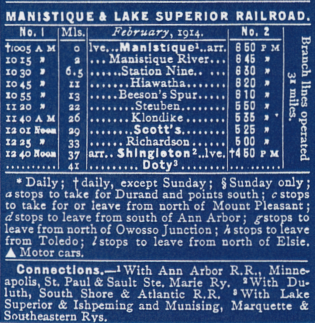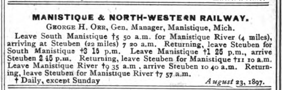 South Manistiquie to Steuben August 2, 1899 Steuben to Mc Neil December 16, 1897 Scotts to Shingeton December 12, 1898 |