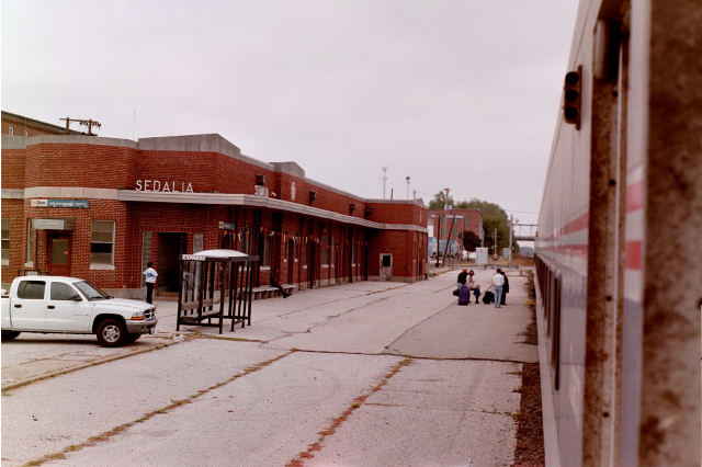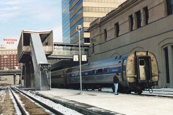 Passengers board Amtrak's St. Louis to Kansas City train at the St.