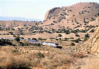 It is possible, upon completion of one of the Horseshoe Curves, to look and see the other side of the train. | This area is near the Imus Ranch, off of Interstate 25 and Bernal, N.M. | |||||||||||||||||