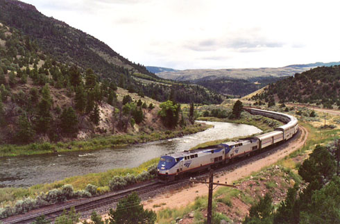 | The California Zephyr on one of its prettiest stretches, along the Colorado River near Bond, Colo., between Glenwood Springs, Colo., and Granby, Colo. | (Photo by Doug Ohlemeier) |