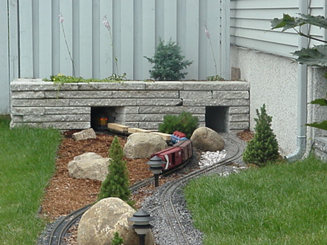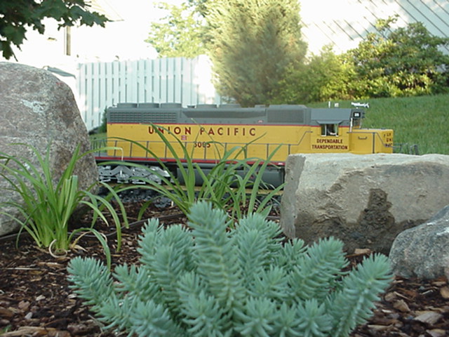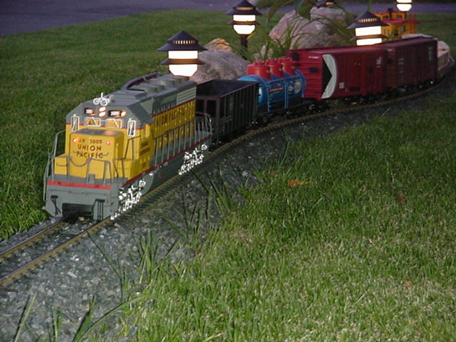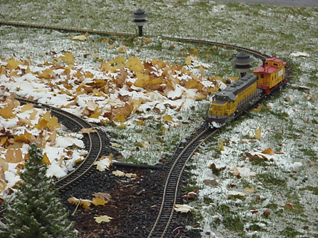 Un train passe sur le C&StL et disparaît dans la cour arrière. |