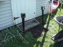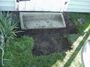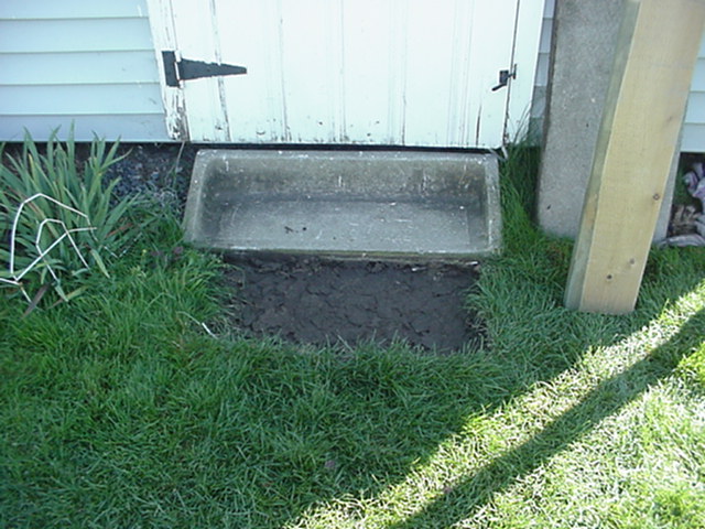 in the grass is the old location of the cement step. |