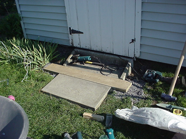 Installation of the crossing in front of the tool shed. The square