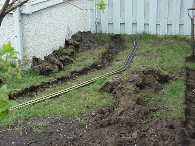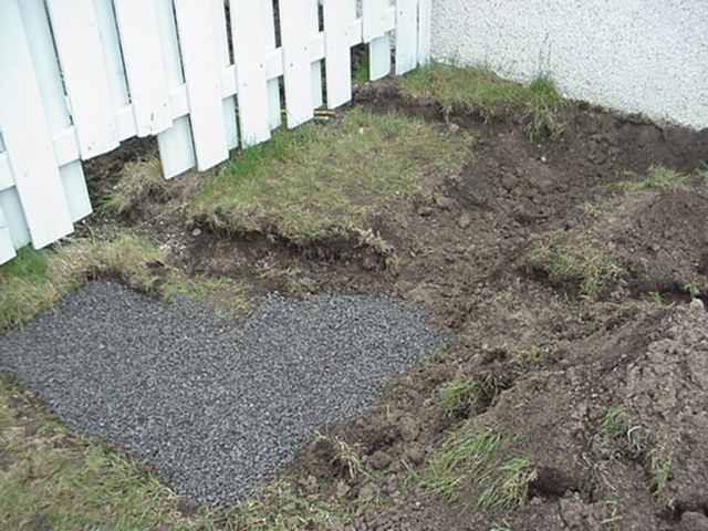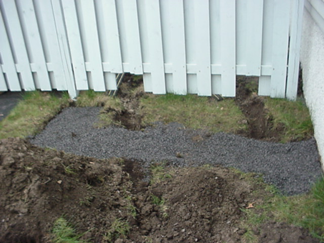Le lit de gravier qui va soutenir le mur du tunnel est en place. |