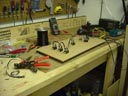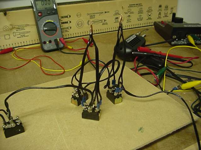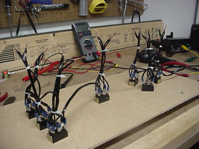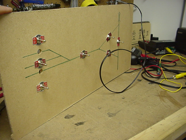 Préparation du tableau des intérupteurs qui servira à alimenter les voies. | Construction of the board with the switches to power the tracks. |