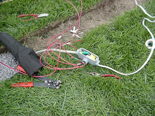 On voit ici deux fils d'alimentation qui proviennent d'une boîte