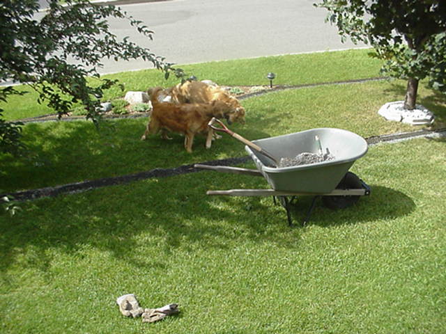Ensuite j'épands du gravier qui tombera entre les dormant de