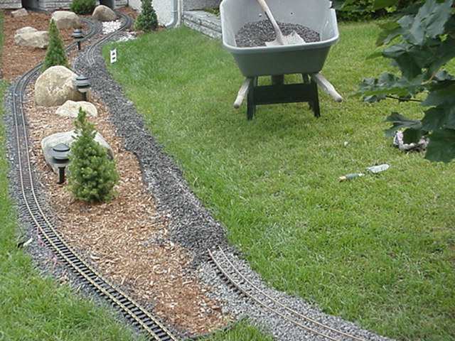 En me servant d'un niveau, je fais de petit tas de ballaste à