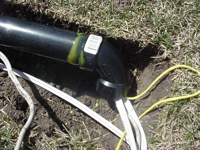 Un coude 90° vers le bas est mis au bout du tuyeau sous terre