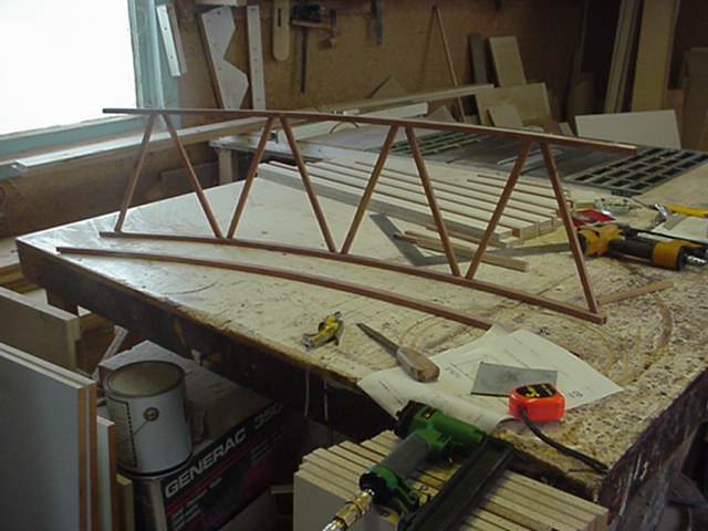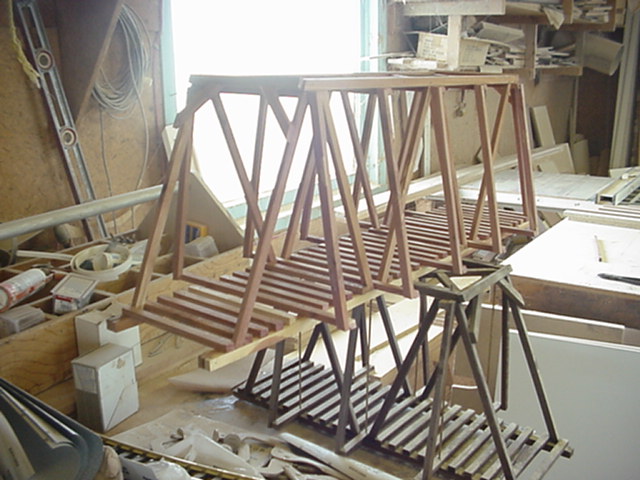 The curved brdige was the same process. The curved beams were shaped
