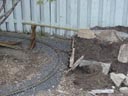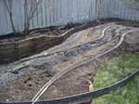 Des roches servent de soutainement lorsque le ballast est trop près