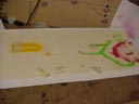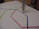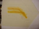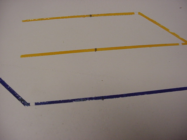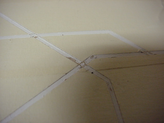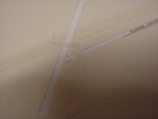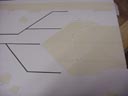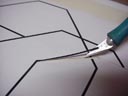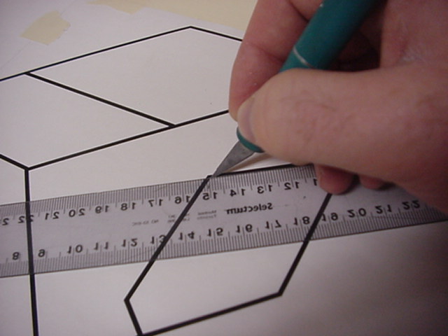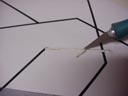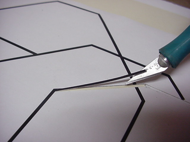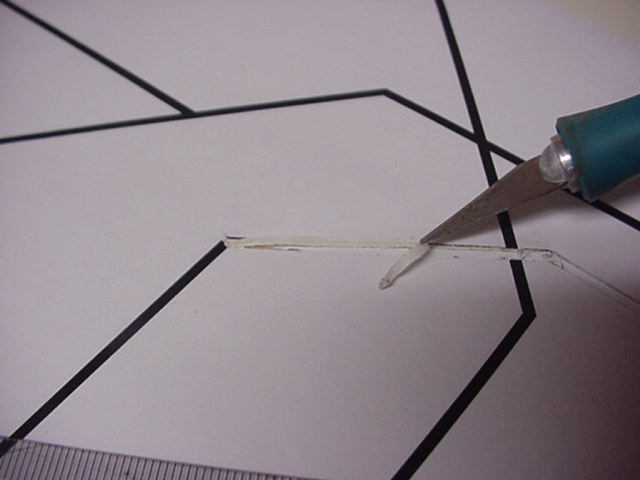 À l'aide d'un exacto et d'une règle, les traits sont enlevés. |