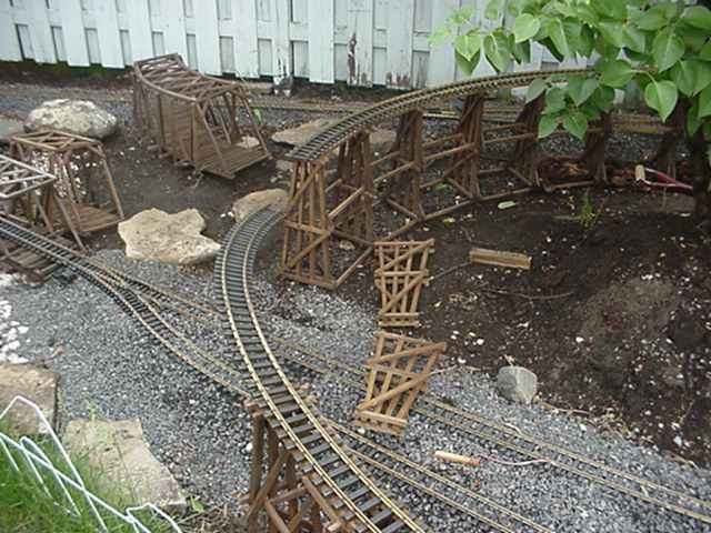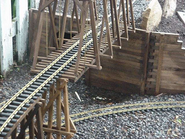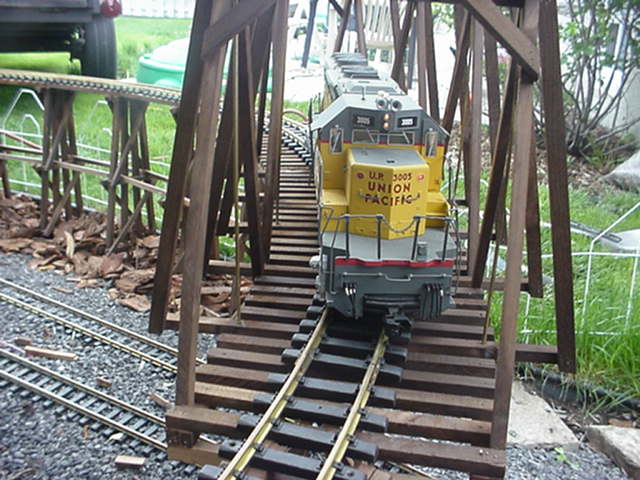 Test de solidité avec une SD40-2. Une pression de 30 lbs fut appliquée sur le côté extérieur de ce pont comme test ultime. Cliquez ici pour voir. | Solidity test with a SD40-2. A pressure of 30 lbs was put on the top of the bridge, on the external side as ultimate test. Click here to see. |