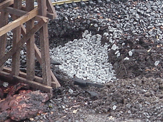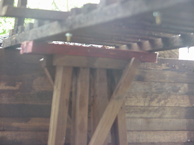 Trou servant à recevoir le chevalet porteur. | Hole for the bent under the bridge. |