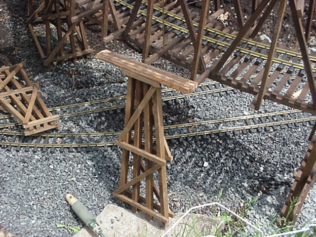 Chevalet de soutainements sous le centre du pont. | Supporting bent under the enter of the bridge. |