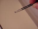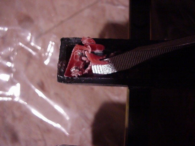 With the blade of a screw driver, break the wax. |