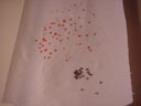 Les points rouges sur cette photo sont de la cire durci sur le papier