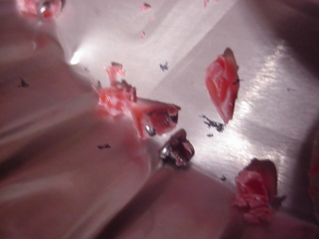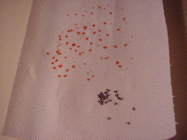 The red dots on this picture are dried wax on the towel. |