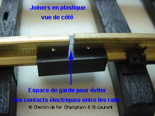 Les joiners en plastiques servent surtout à isoler les voies, tout en les maintenant en place. Il servent à délimiter les blocs électriques. Le chapître sur les court-circuits parlent de leur utilisation.