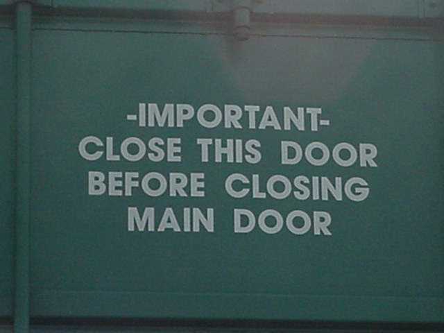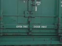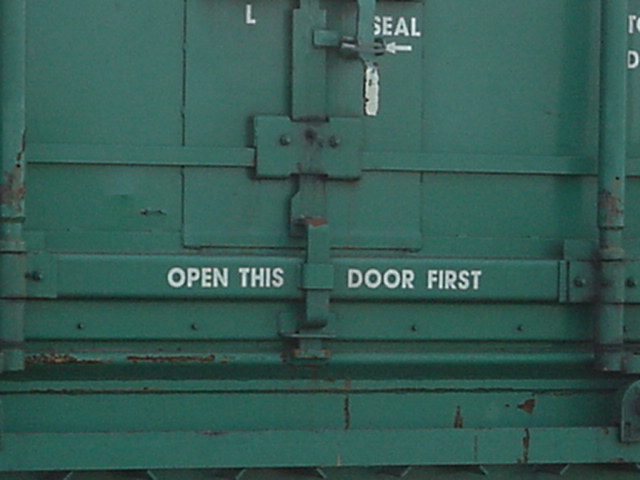 Poignée de la porte. Le papier noir et blanc en bas à droite est une instruction de l'expéditeur au destinataire. Handle of the door. The black and white paper is an instruction from the shippers to the receiver. |