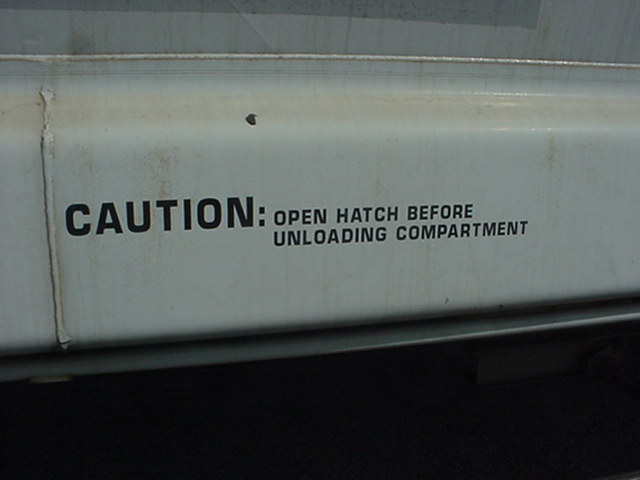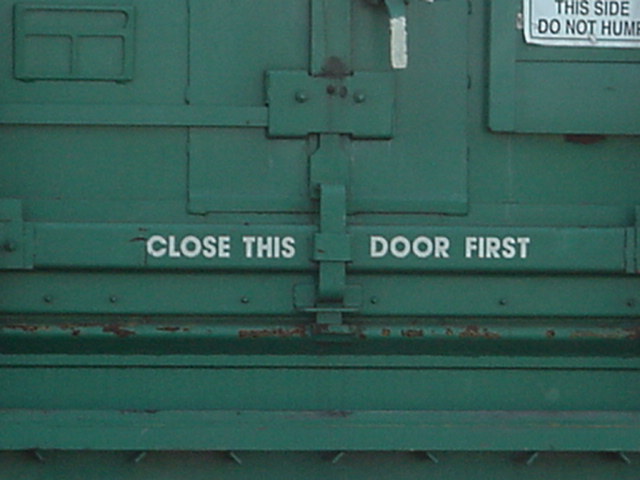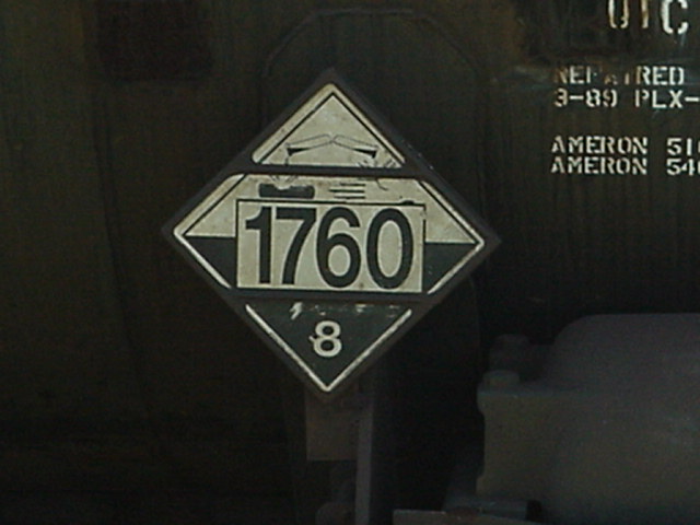 Cette affiche s'appelle un placard. Elle est présente seulement sur un wagon-citerne chargé. Avec le "Guide des mesures d'urgence 2000", on peut savoir de quel produit le wagon est chargé, et quoi faire en cas de déversement. Dans ce cas-ci, de l'acide hexanoïque. La mort peut être causé par simple contact avec la peau! This sign is shown only on a loaded tank car. With the Hazardous Material Safety Guide 2000, we can know what's inside the car, and how react in case of spill. In this case, hexanoic acid. Skin contact can cause death! |