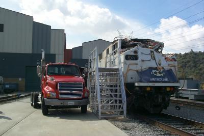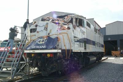 On January 28, 2000 a tractor-trailer rig hauling an oversized oil refinery processor part got stuck on the tracks and was hit by a Metrolink train. Metal debris was scattered for a block and several wheels on the train were derailed. The flatbed of the trailer hit the lower part of the engine and the load smashed into the engineer's compartment. At the time of this writing, there have been five separate train vs. tractor-trailer incidents involving Metrolink trains in the last three months throughout the Southland, a significant increase from the prior 24 months when there was only one such incident throughout an almost two year period. |