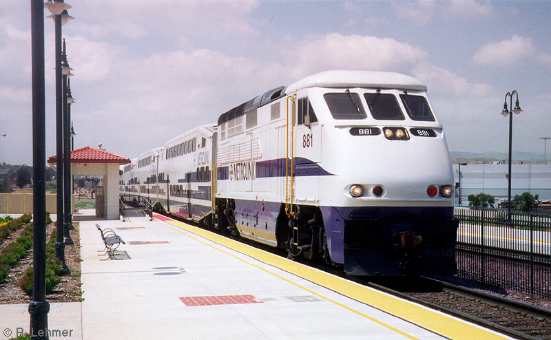 Brand new F59phi engine 881 pulling the Metrolink Orange Blossom Special. This train started in San Juan Capistrano and ran to Riverside for the Orange Blossom Festival. |