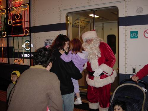 With 30,000 lights, Santa Claus and a whole cast of characters, the Metrolink Holiday Toy Express makes it runs throughout the Metrolink system.  Join Charles White and Tom Morrow as they document one of the runs from Los Angeles, Burbank, Sylmar and Santa Clarita stations on a cold rainy night November 29, 2002.