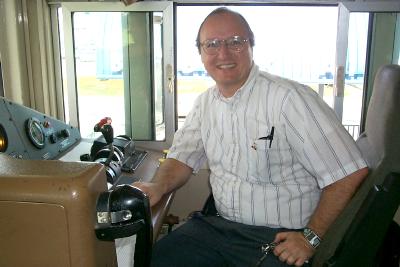Charles P. White at the Engineer's seat of Metrolink Engine #866. This is the camera we use. |