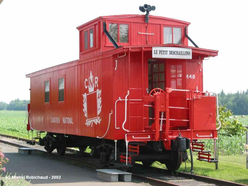 CN-Leaside rebuilt wood caboose number 78448 is on static display at Parisville, QC, at the entrance of the "Parc linéaire du Petit Deschaillons". This is a bike path built on CN's former Deschaillon Sub, abandoned in the '80s.