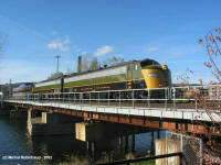 They are seen here over the Lachine Canal, MP 2.9 Montreal Sub, on November 3rd, 2002. |