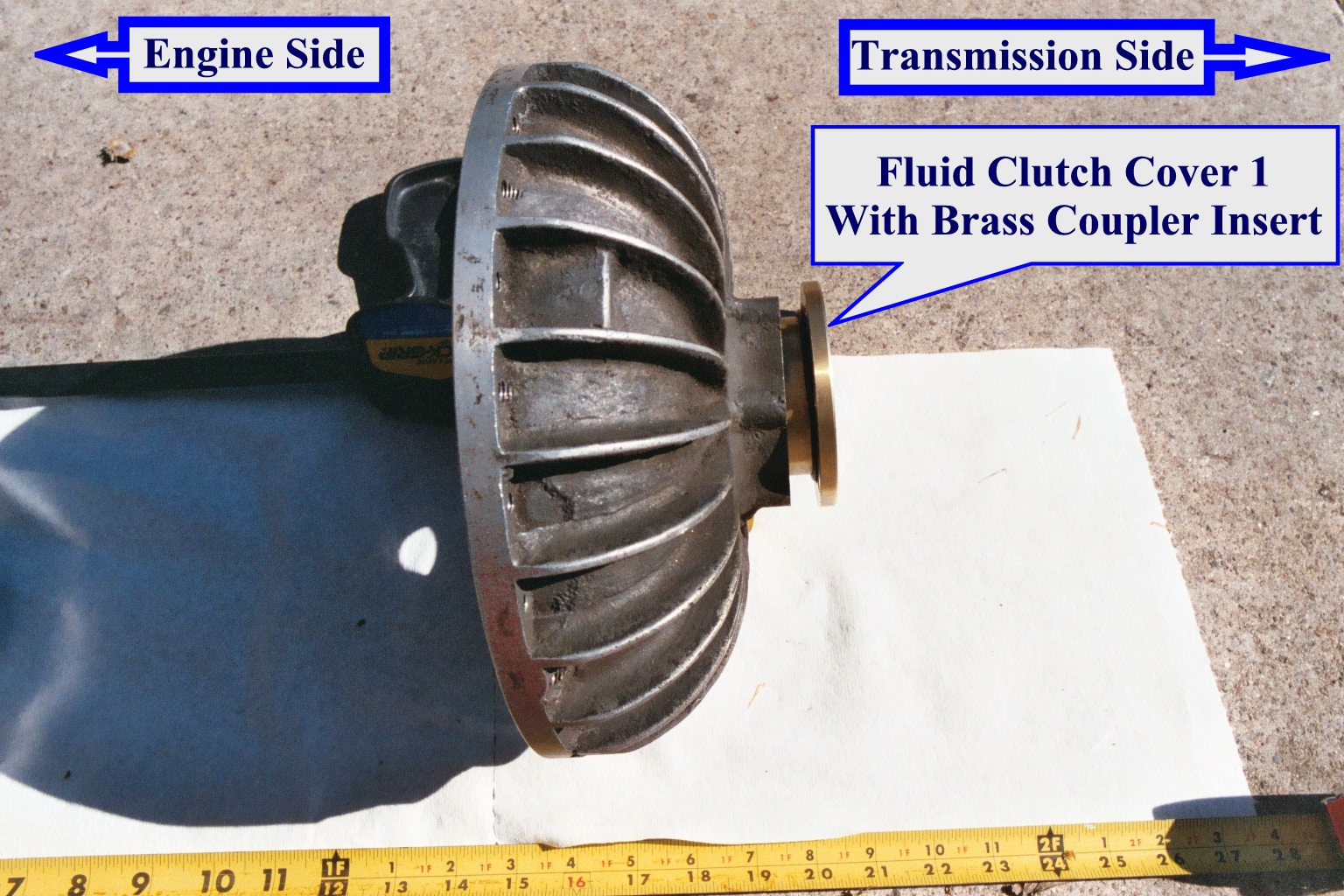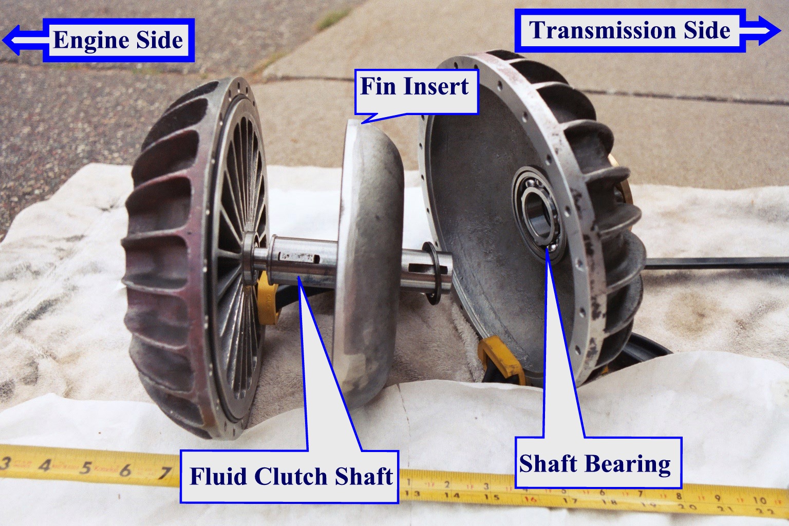 If you ever end up having to take your clutch apart my first recommendation is take your time! My second suggestion is have someone there to help you. Drain the fluid clutch as best you can while it remains mounted in place. You will not be able to empty it completely unless you let it drip for an extended period of time (like over night?).