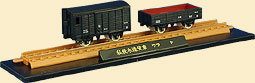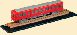 Tomytec makes these models as unpowered plastic toy models complete with plastic wheels. The models generally come in sets or collections that are limited-time production runs. They are announced, reservations are taken, and they are manufactured. Thus only the most recent ones are generally available for retail sale, and the rest may appear from time to time second-hand. They are all listed here for reference. While they are toys, these models are made to scale and are well detailed. They can easily be powered by removing the floor of the car and replacing it with a made-to-fit Tomytec TM-series powered chassis with flywheel drive. Trailers can be made operational by installing a Tomytec TT-series kit with metal wheelsets, a metal weight for the car, and couplers. The earliest power chassis (TM-01 through TM-04) have only one truck powered. They are still adequate for pulling a trailer or two on level track. The rest have 8-wheel drive and pickup, with dual flywheels. For more information of the TM-series power chassis, the TT-series trailer kits and the TD-series truck sideframe kits, see the "Traction Chassis" section of this website. Click here to see a typical parts assembly diagram. The typical Tetsudou ("Railway") Collection consists of ten cars, made from a smaller number of bodyshell castings. A separate storage folio case is also sold, and it comes with an unpainted bodyshell inside. To further complicate everything, each individual "toy" in the collection set of ten comes in a smaller inner box that does not indicate which particular car is inside, and Tomytec makes an eleventh "secret" car which may be substituted into the larger box of ten. There is no assurance exactly what ten cars will be in the larger box, or which car is in any particular inner box. Where information on "secret" cars is known, it is presented below. Tomytec also offers smaller special collections of one to three cars. Tomytec numbers the Railway Collection cars sequentially in internal documents, as used in the tables below. Limited Edition "event" cars apparently are not given numbers. |
