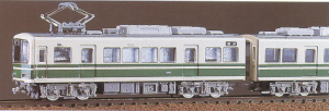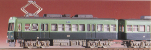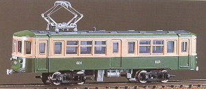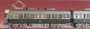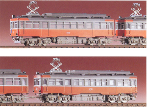 Pre-colored kit for an Enoden 1000 type 2-car set. I believe this one comes with the power unit and trailer chassis GM-593 to complete this model. Also in the box is an Enoden 600 type car, and it requires power chassis GM-592 to complete it. I believe the pantograph is included for the Enoden 1000 but not for the 600.