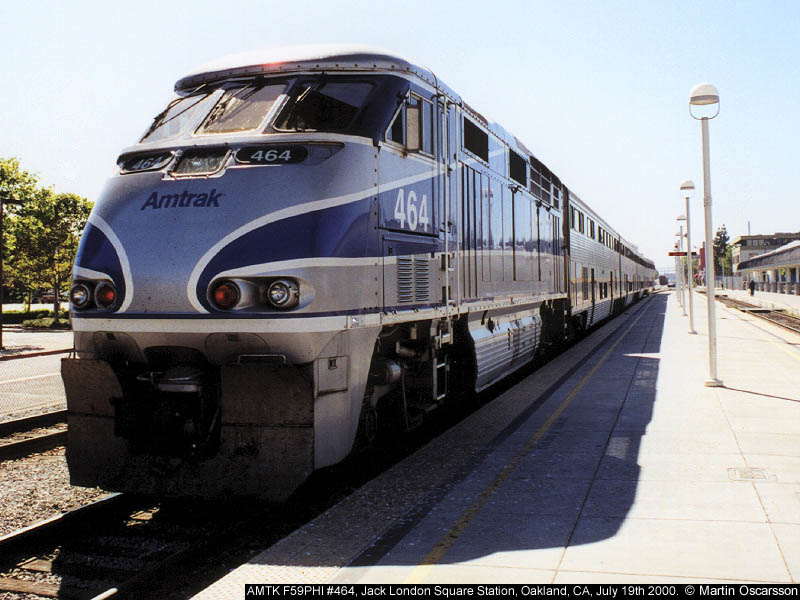 F59PHI #464 leaving Jack London Square Station in Oakland, CA, with a Capitol