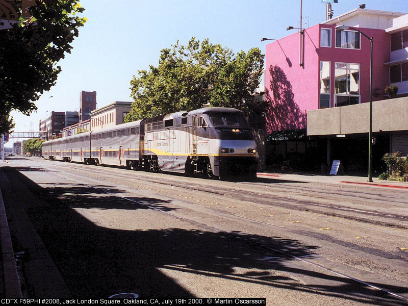 CDTX F59PHI #2008 rolls slowly down the street at Jack London Square, Oakland,