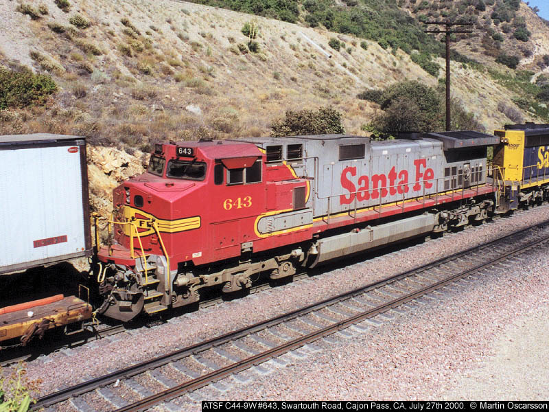 ATSF C44-9W #643 at Swartouth Road on Cajon Pass, CA, July 27th 2000. |