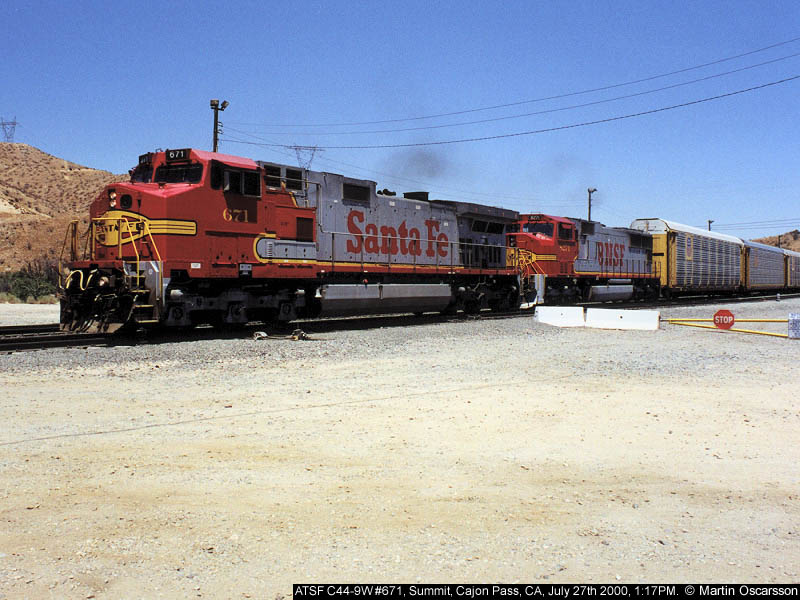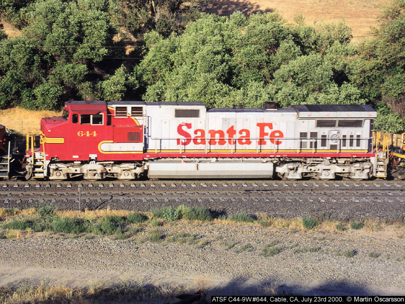 Santa Fe C44-9W #644 at Cable, CA, in the early morning of July 23rd 2000. |