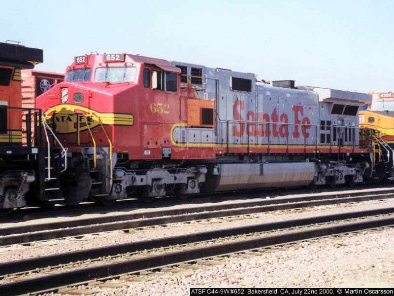 Santa Fe C44-9W #652 at Bakersfield, CA, July 22nd 2000. |