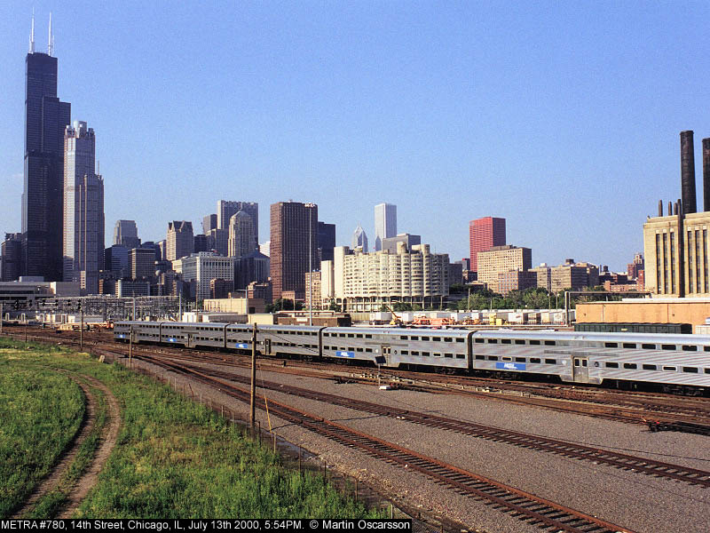 Metra cabcar #780 leads a commuter train past 14th Street towards Union