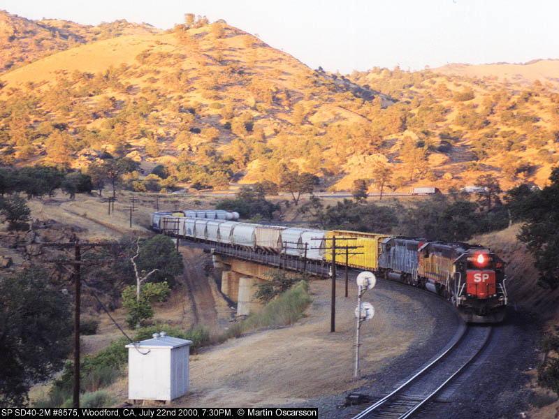 is about to enter the siding at Woodford, CA, July 22nd 2000 at 7:30PM. |