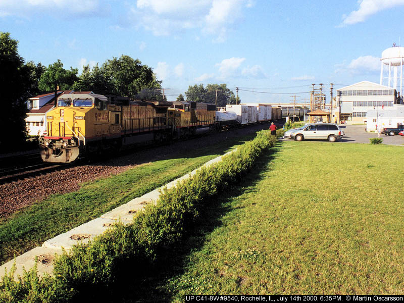 UP C41-8W #9492 and C40-8 #9109 with a westbound intermodal train at Rochelle, IL, July 14th 2000 at 12:09PM.