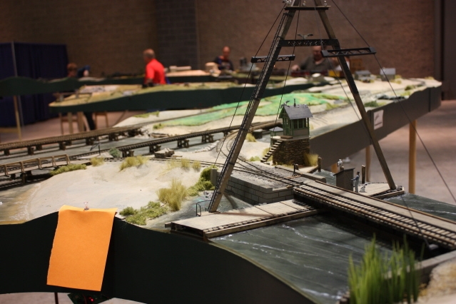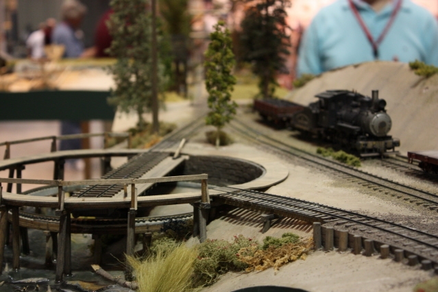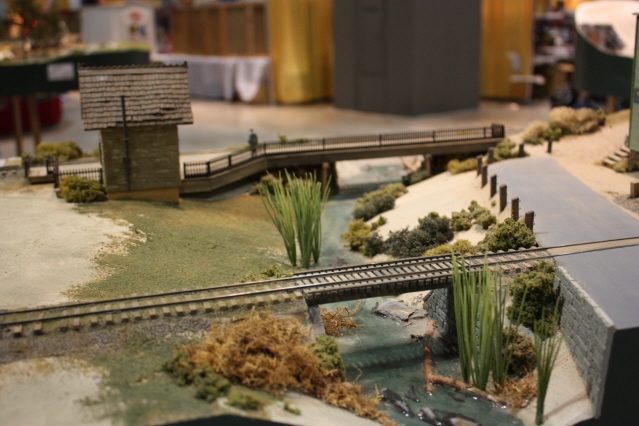 One of the visually stunning and interesting Free-Mo Modules is the turntable module. The turntable is located over the water. Also, there is a small siding located on the curved module.