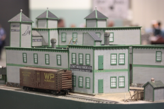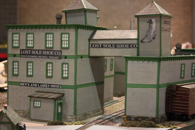 Lost Sole Shoe Company is a large 10 foot module that contains a number of sidings that allows for some switching. It also has a standard gauge loading track that helps show the difference between standard and narrow gauge.
